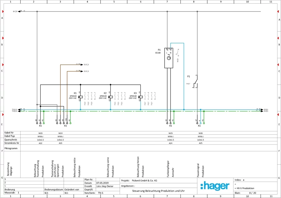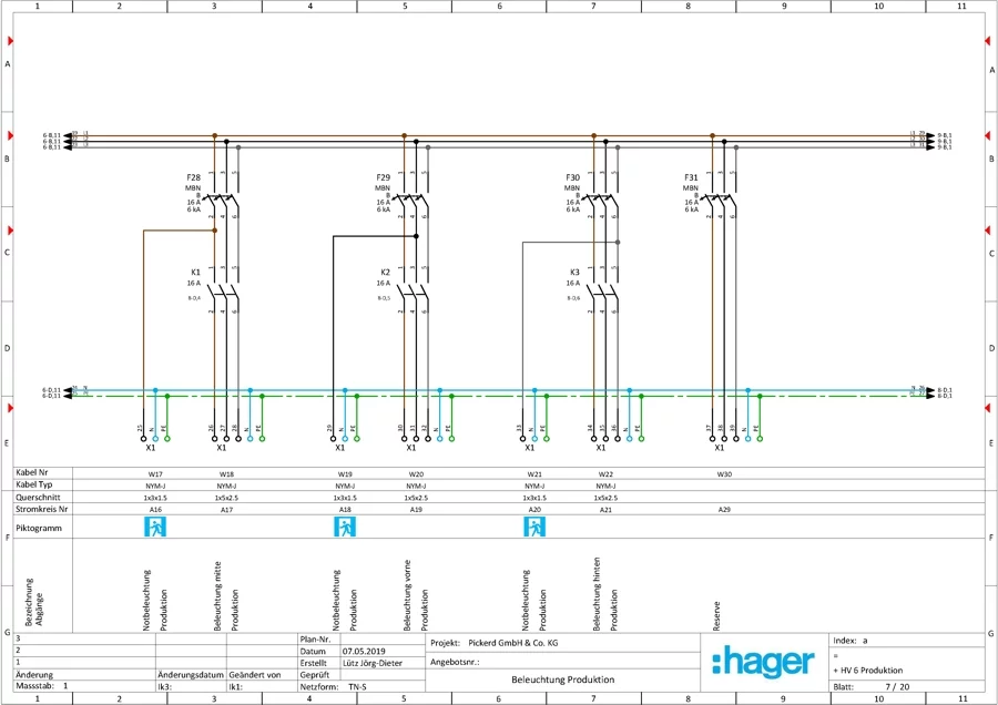mit Beleuchtungs- und Steckdosenstromkreisen